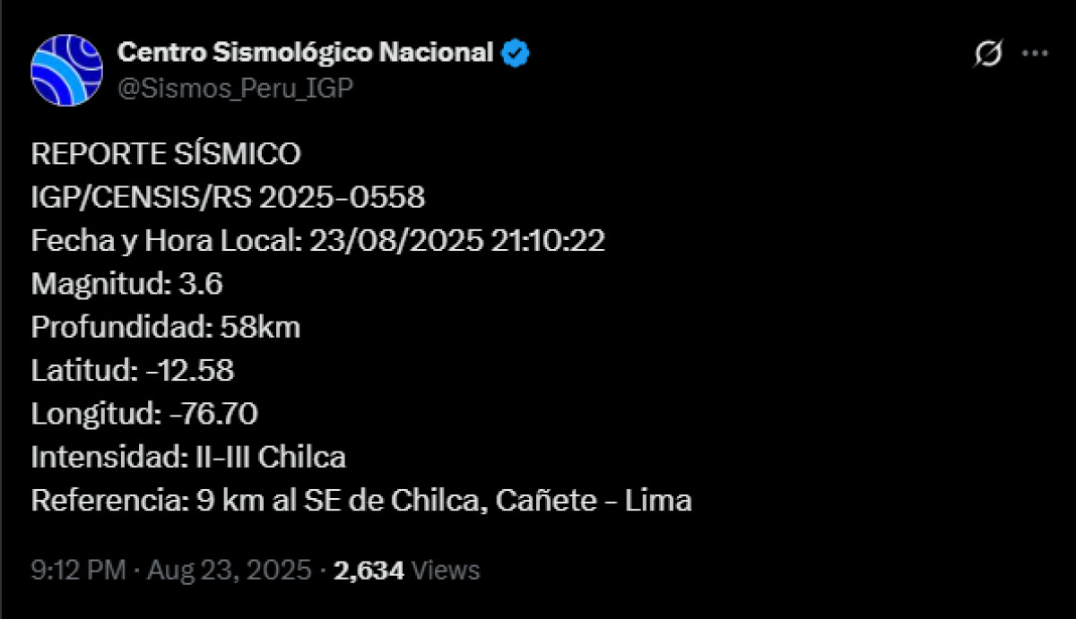 Temblor en Perú HOY, sábado 23 de agosto, según IGP: ¿de qué magnitud fue el último sismo en Perú?
