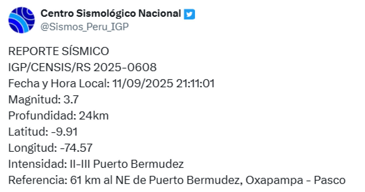Temblor en Perú HOY, 12 de septiembre, según IGP: ¿de qué magnitud fue el último sismo?