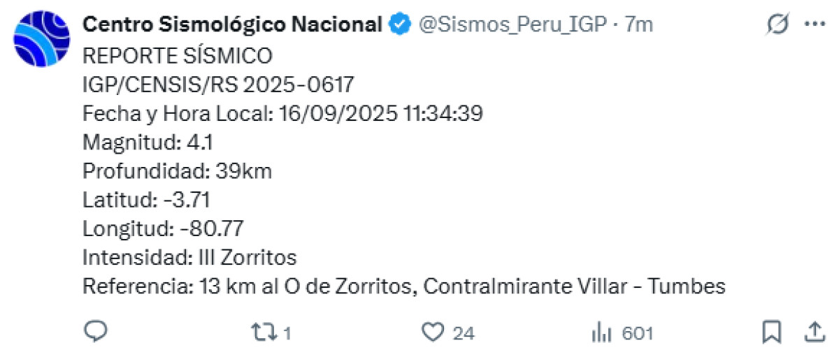 Temblor en Perú HOY, martes 16 de septiembre 2025: ¿a qué hora y dónde ocurrió el último sismo vía IGP?
