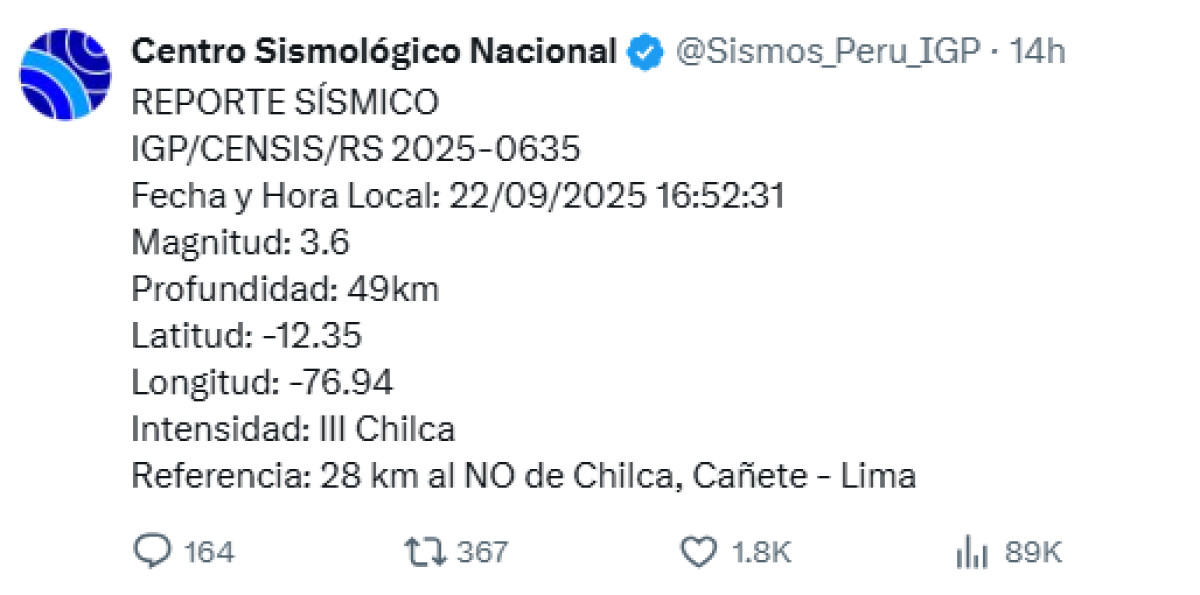 - Temblor en Perú HOY, lunes 22 de septiembre: ¿a qué hora ocurrió el último sismo registrado en Lima, según el IGP?