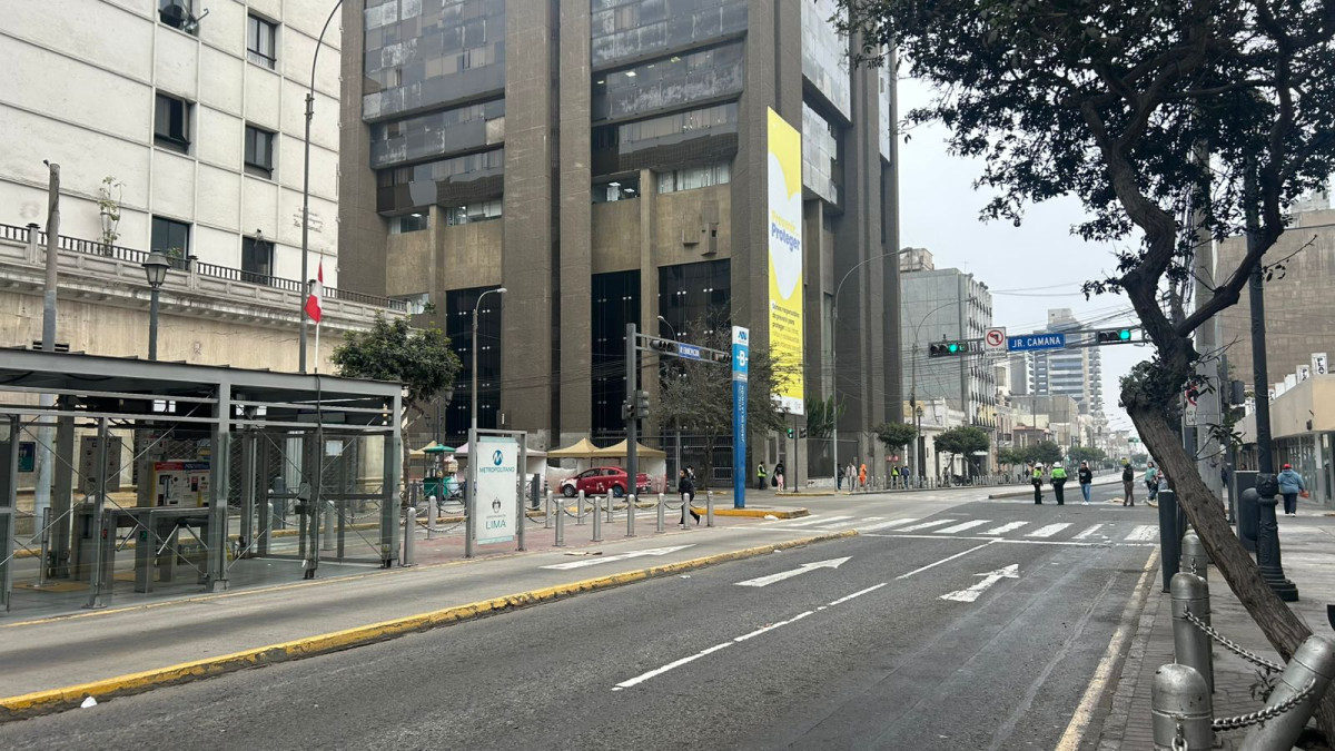 Principales calles de Lima, como el jirón Rufino Torrico, permanece cerrado en la intersección con Nicolás de Pierola. Autoridades desvían los vehículos hacia la plaza San Martín por la av. Tacna. Asimismo, la av. Emancipación continúa cerrada y desvían los autos en dirección a av. Tacna.