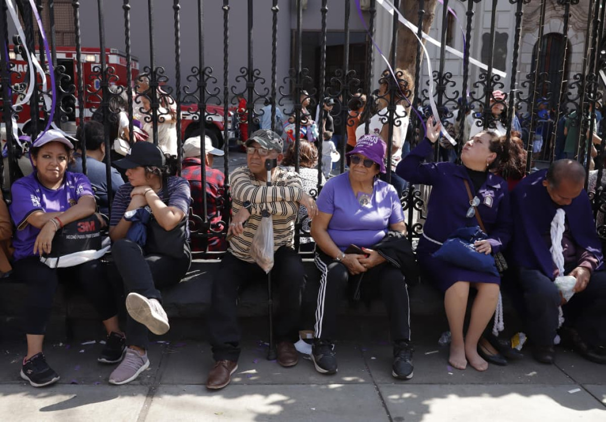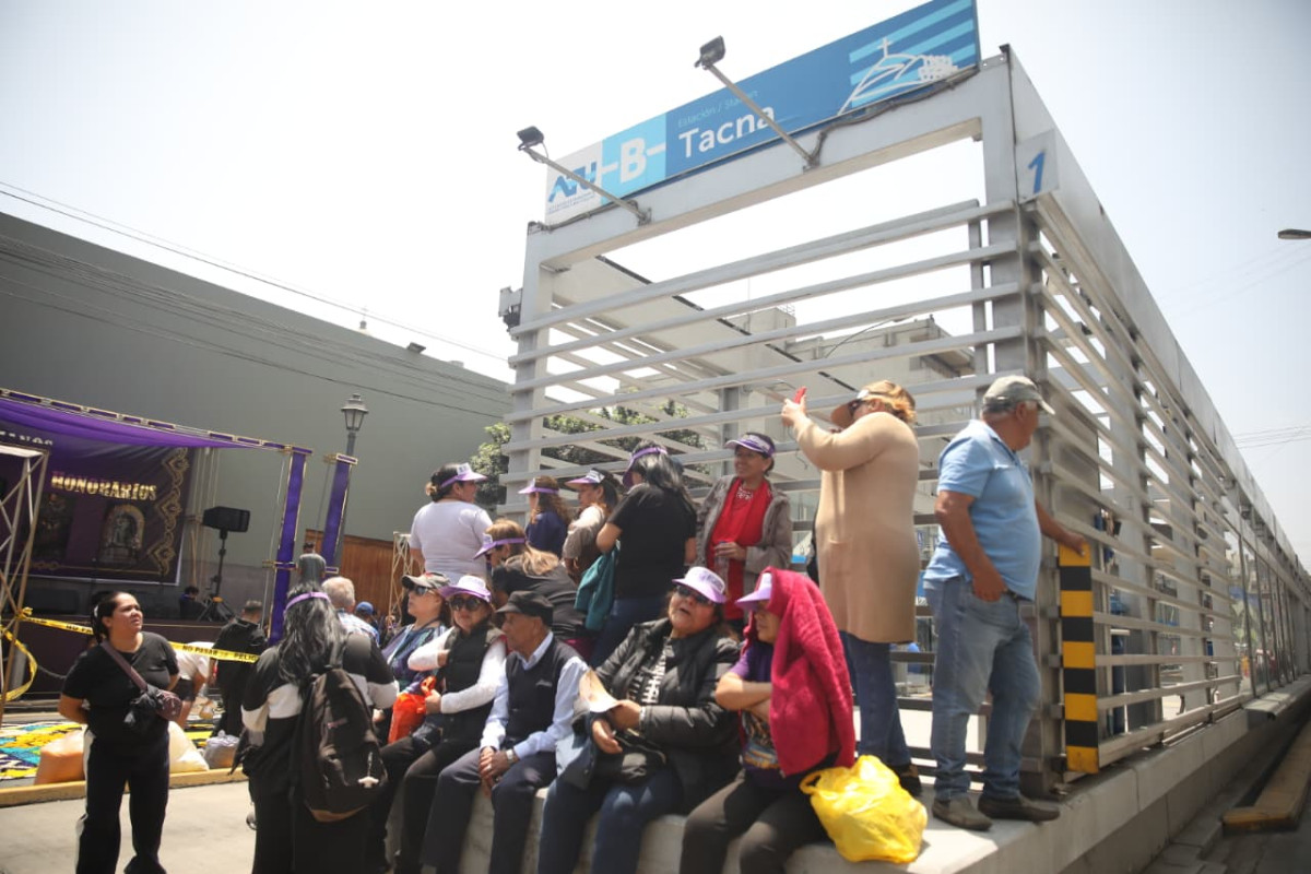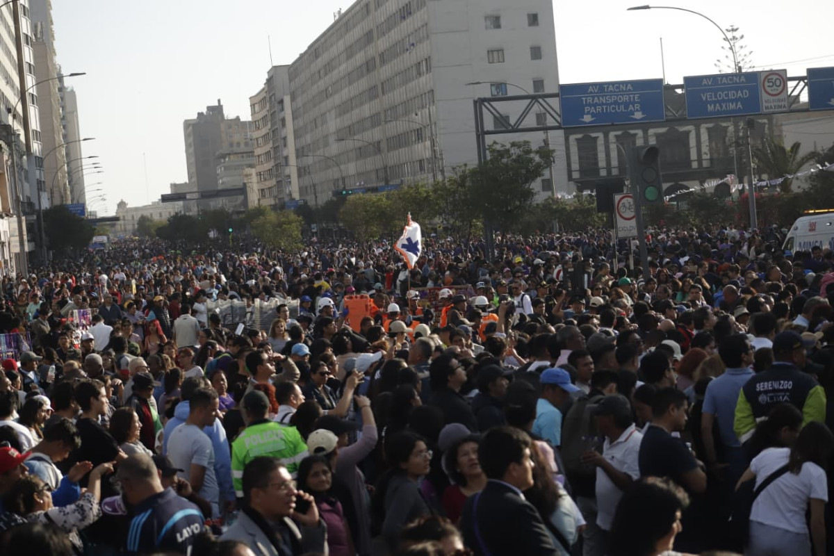 Cientos de creyentes comienzan a llegar a la avenida Tacna y las calles aledañas con la esperanza de acercarse al anda que lleva la imagen del Señor de los Milagros durante la primera procesión de este 2025.
