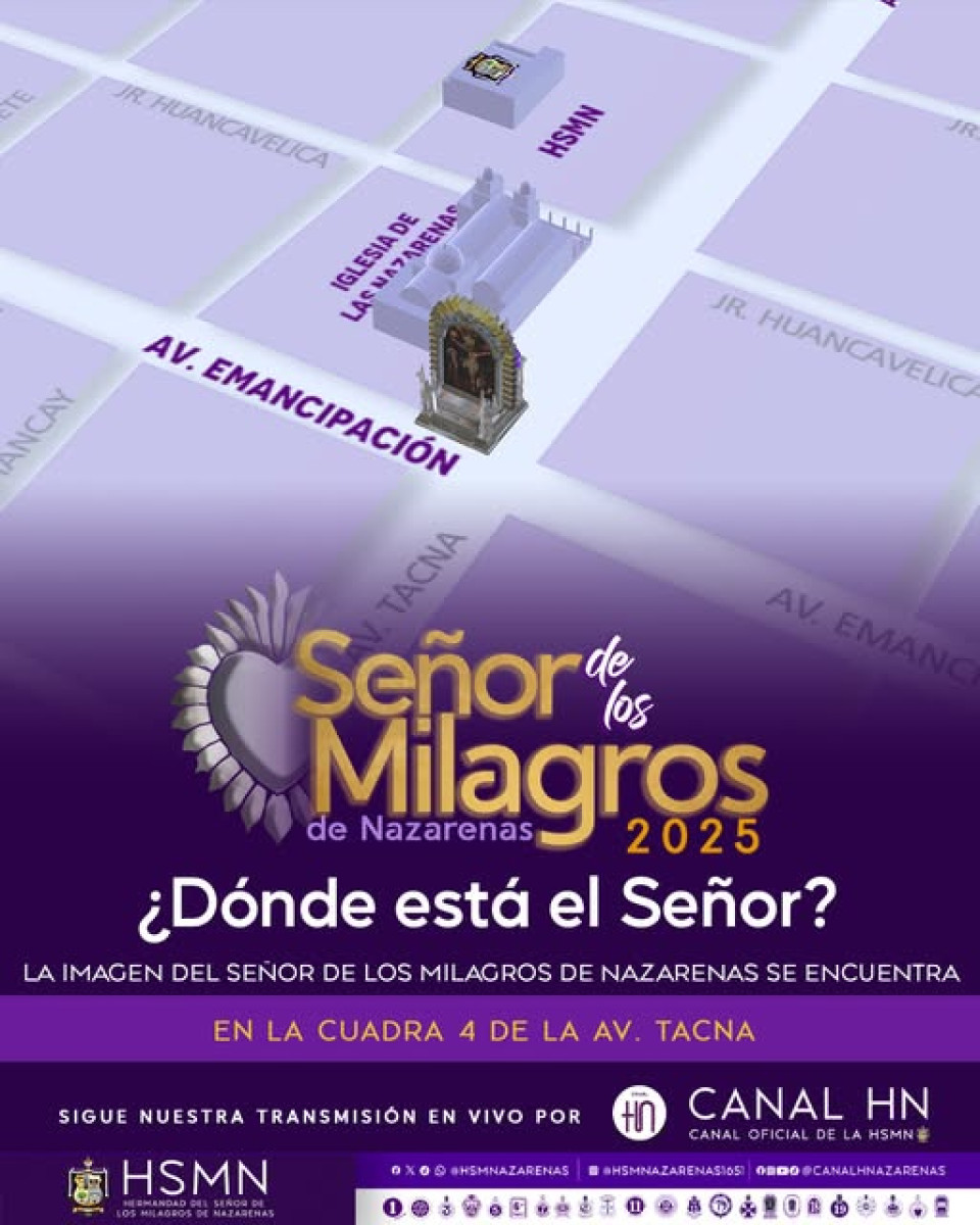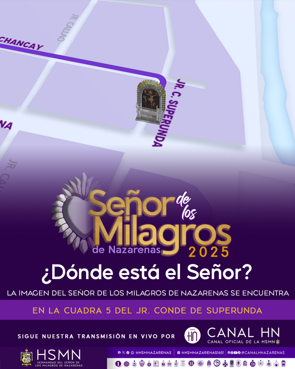 Nazarenas TV, el canal oficial de la Hermandad del Señor de los Milagros, realiza la transmisión completa del primer recorrido este 4 de octubre. Para dirigirte a su canal oficial puedes hacer click AQUÍ.