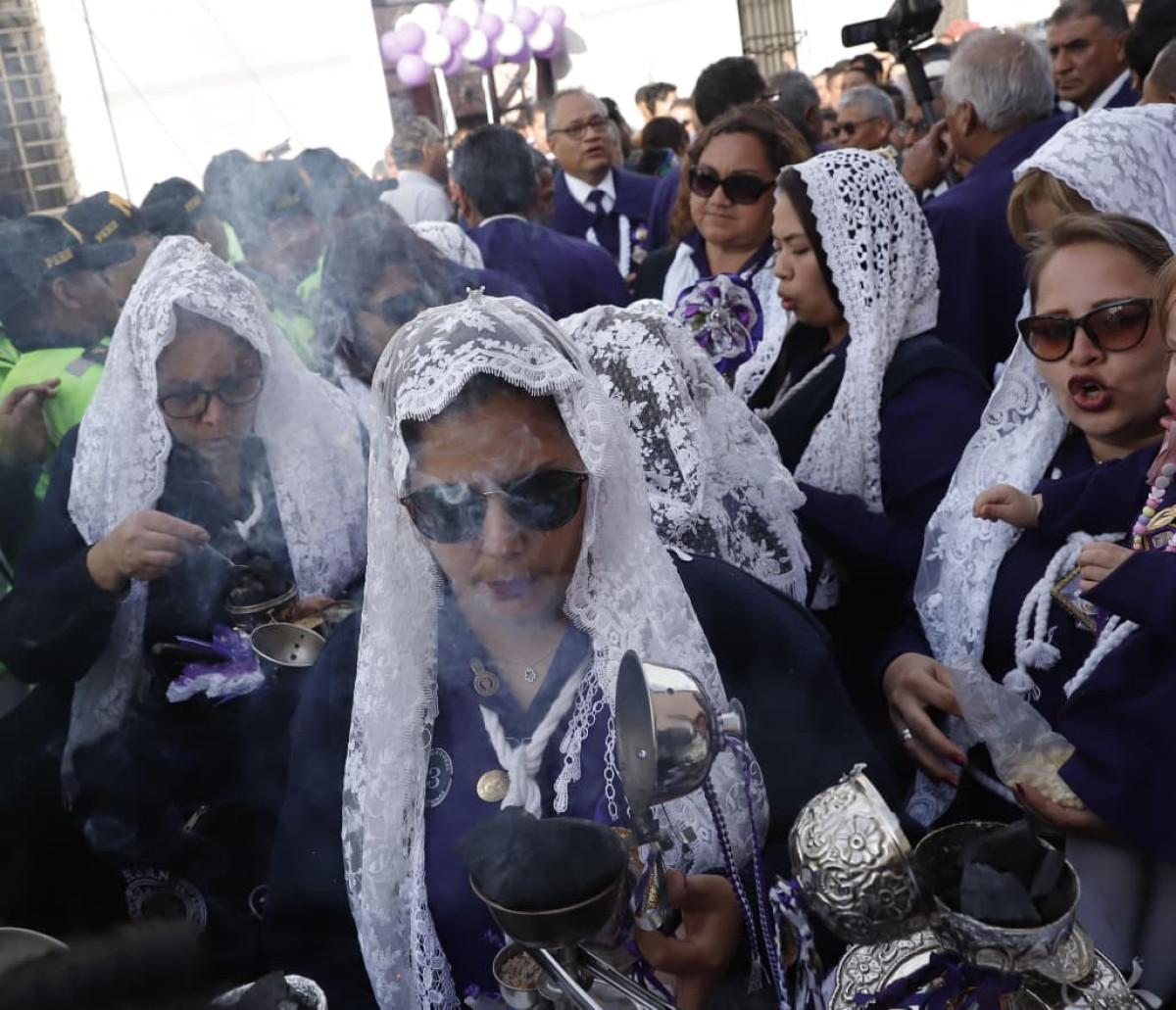 La hermana Ruth, jefa de las sahumadoras del Señor de los Milagros, instó a los fieles a participar del recorrido y recordó los más de 70 años de institución: "Nuestras raíces son las esclavas negras, desde que pintó el moreno de Angola a nuestro Cristo. Desde ya venimos aromatizando su camino".