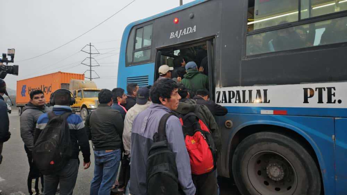 Paradero Puente Nuevo durante paro de transportistas: pasajeros viajan hacinados
