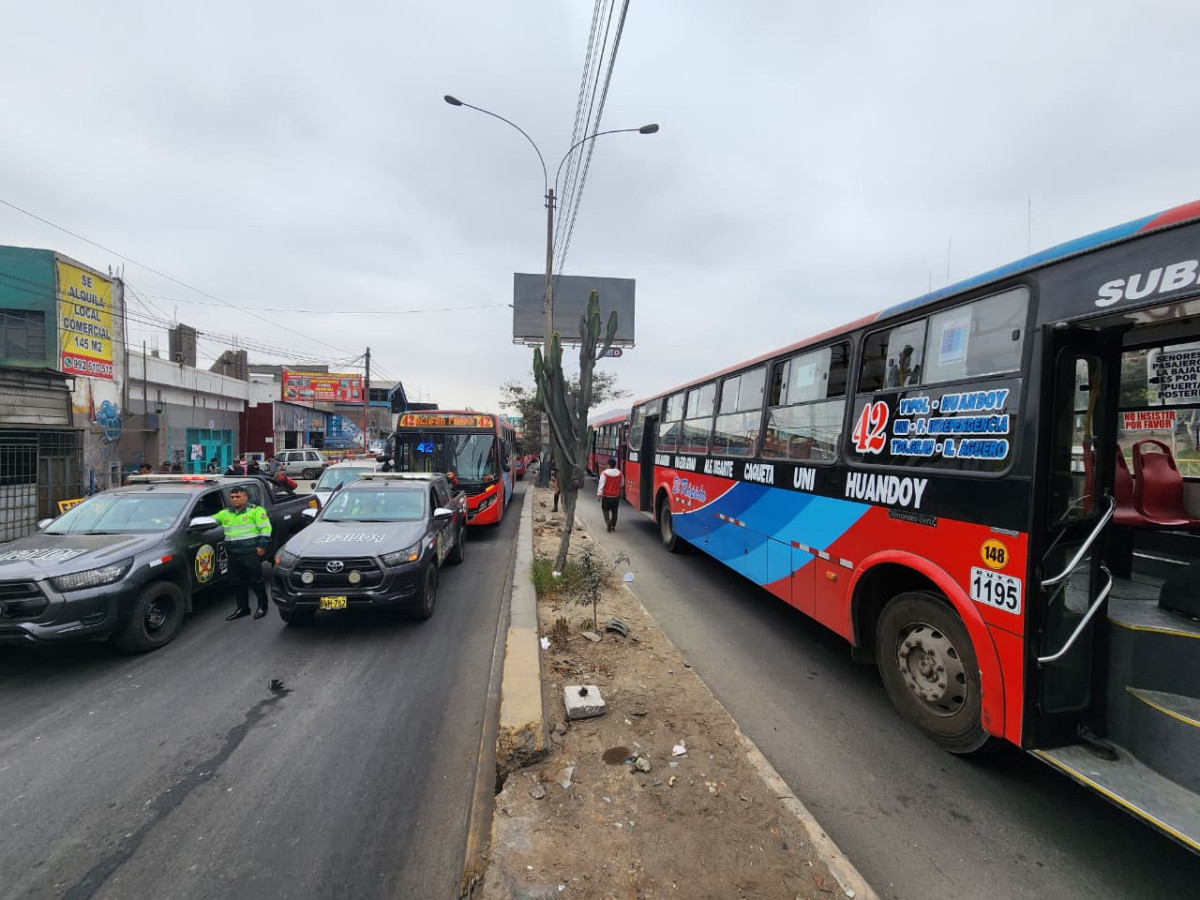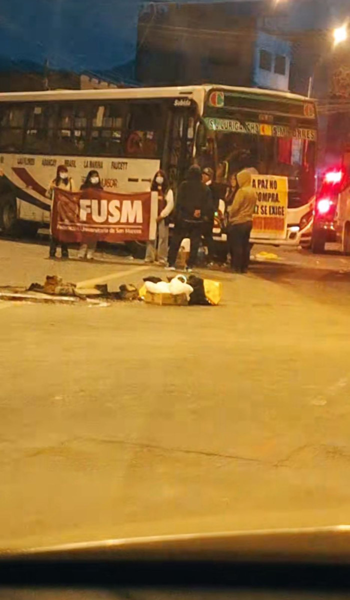En medio de las manifestaciones, la Policía Nacional ha bloqueado la caravana de buses de empresas como El Rápido, Los Loritos y Nueva América a la altura del puente Primera de Palao, en la Panamericana Norte. Los conductores se dirigían hacia el Congreso de la República ante la ola de asesinatos.