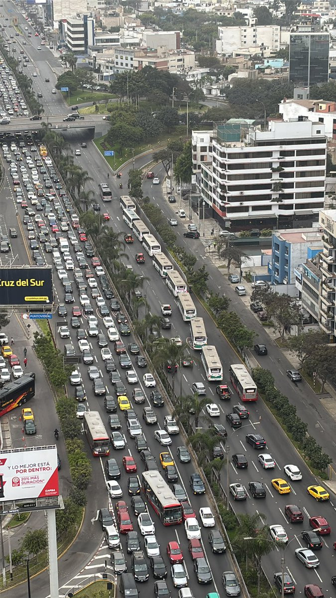 Debido al bloqueo de vías por buses de transportistas en el marco de las manifestaciones por el paro. La avenida Javier Prado presenta gran congestión vehicular. De acuerdo con las imágenes difundidas en redes sociales, la paralización afecta al Corredor Rojo.