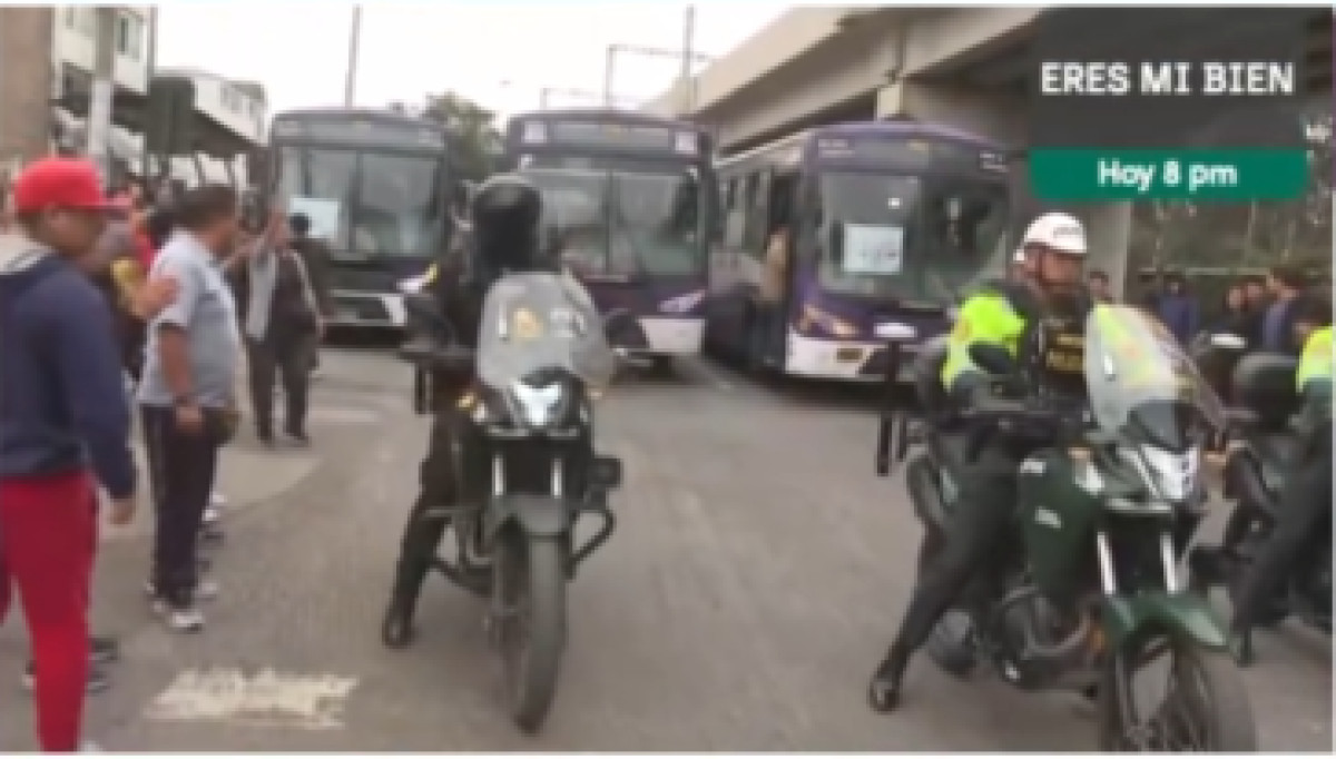 Por más de dos horas, la Policía Nacional impide el paso de 20 buses de la empresa El Rápido, los cuales se dirigían hacia el Congreso de la República ante los continuos asesinatos que aquejan al sector.