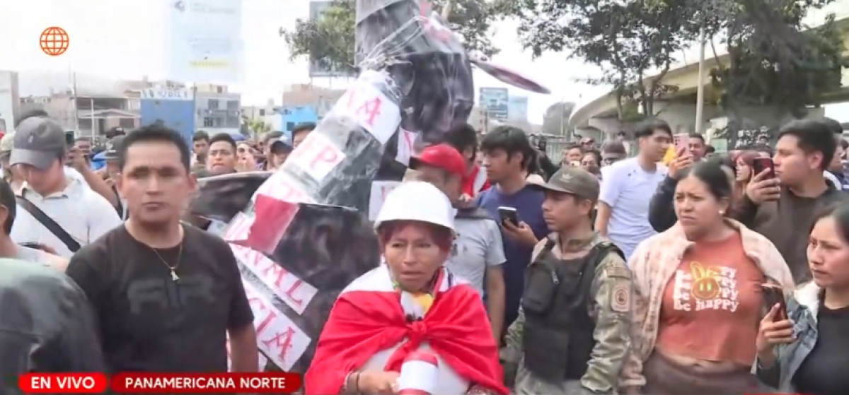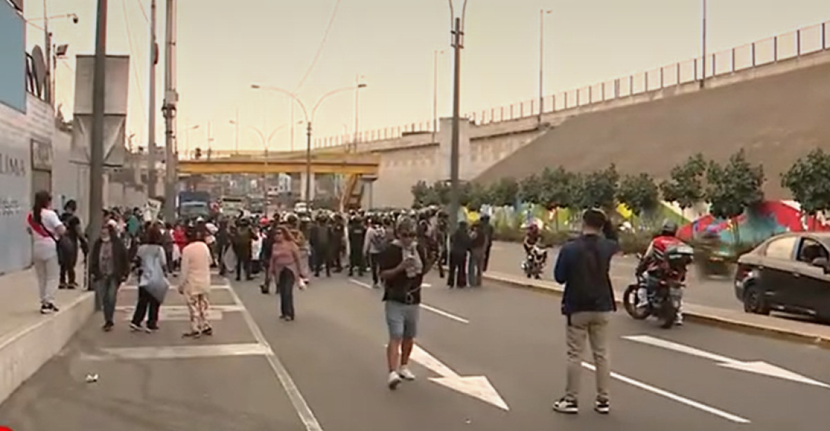 Los manifestantes, en su mayoría transportistas, se dirigen a la avenida Alfonso Ugarte. En uno de los carteles se lee: ''Apaga tu motor, no más muertes''. Varias de las personas que protestan gritan frases como ''Dina asesina, el pueblo te repudia''. El objetivo sería llegar hasta el Congreso, según indicó una ciudadana.