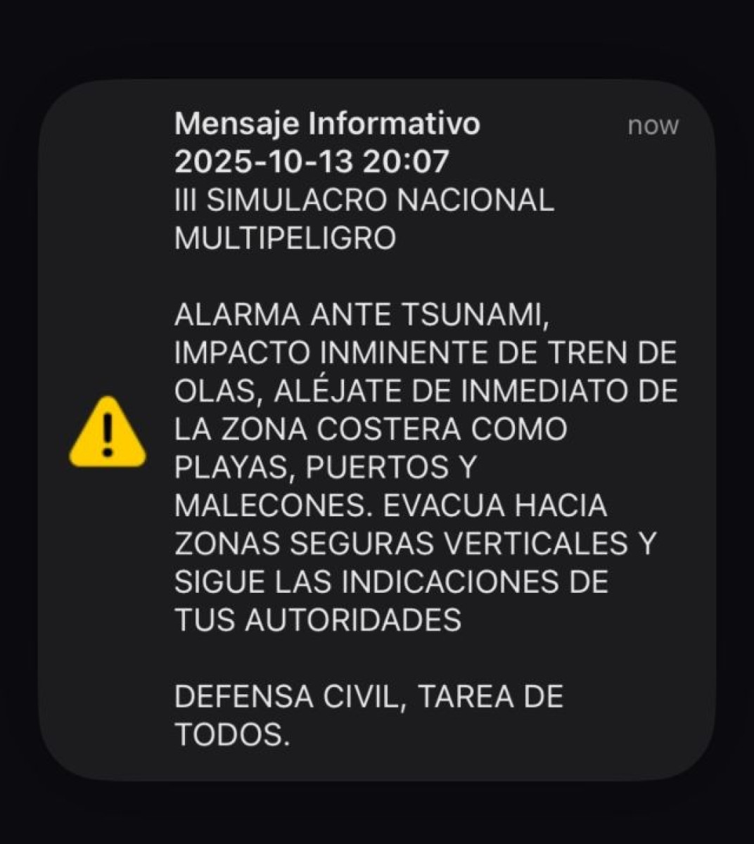 Según informó INEDCI en sus canales principales, el Tercer Simulacro Nacional Multipeligro comenzará a las 8:00 p.m. de este 13 de octubre. Pidió a la ciudadanía mantenerse alerta y seguir las instrucciones con atención.