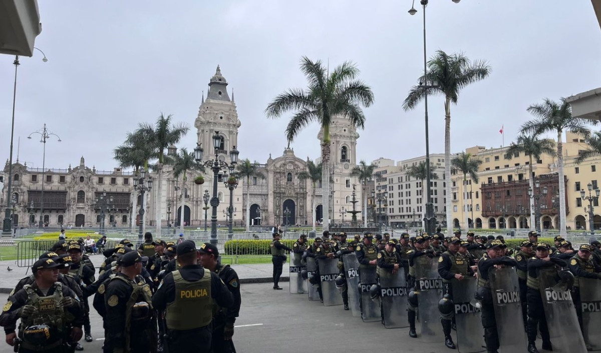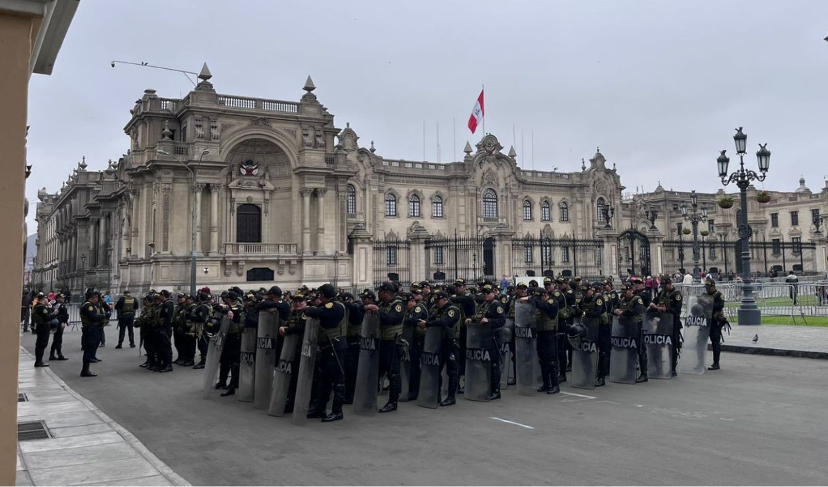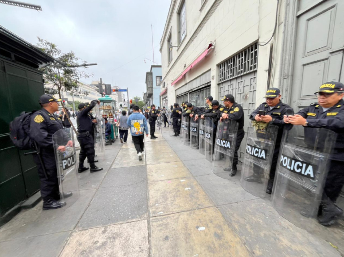 En la avenida Abancay, se han colocado rejas frente al Congreso de la República y numerosos agentes de la Policía Nacional del Perú custodian los espacios públicos.