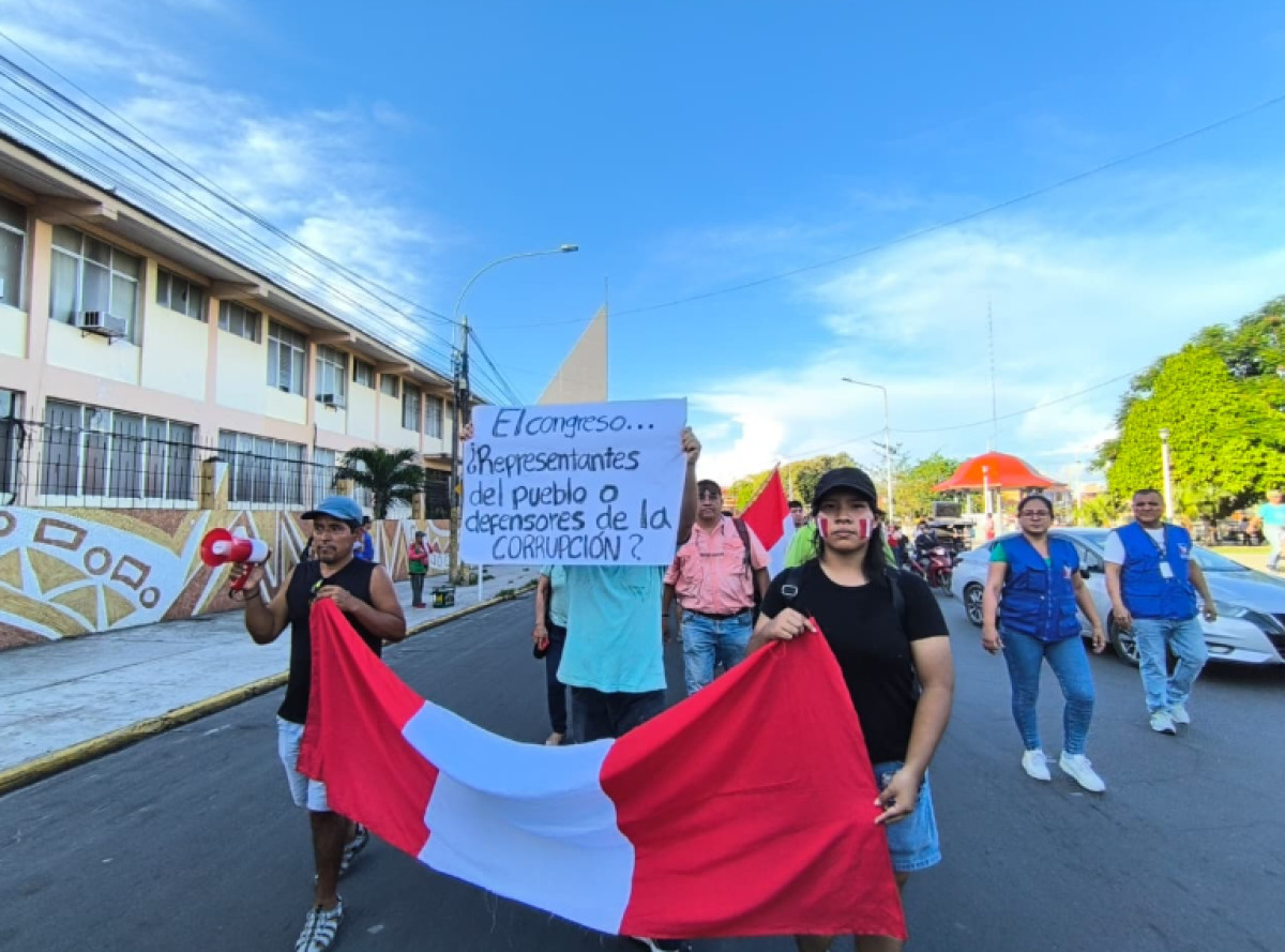 En Iquitos, distintos gremios, incluyendo al SUTEP, y organizaciones de la sociedad civil se movilizan por las principales vías de la ciudad, dando inicio a la marcha convocado por colectivos juveniles.