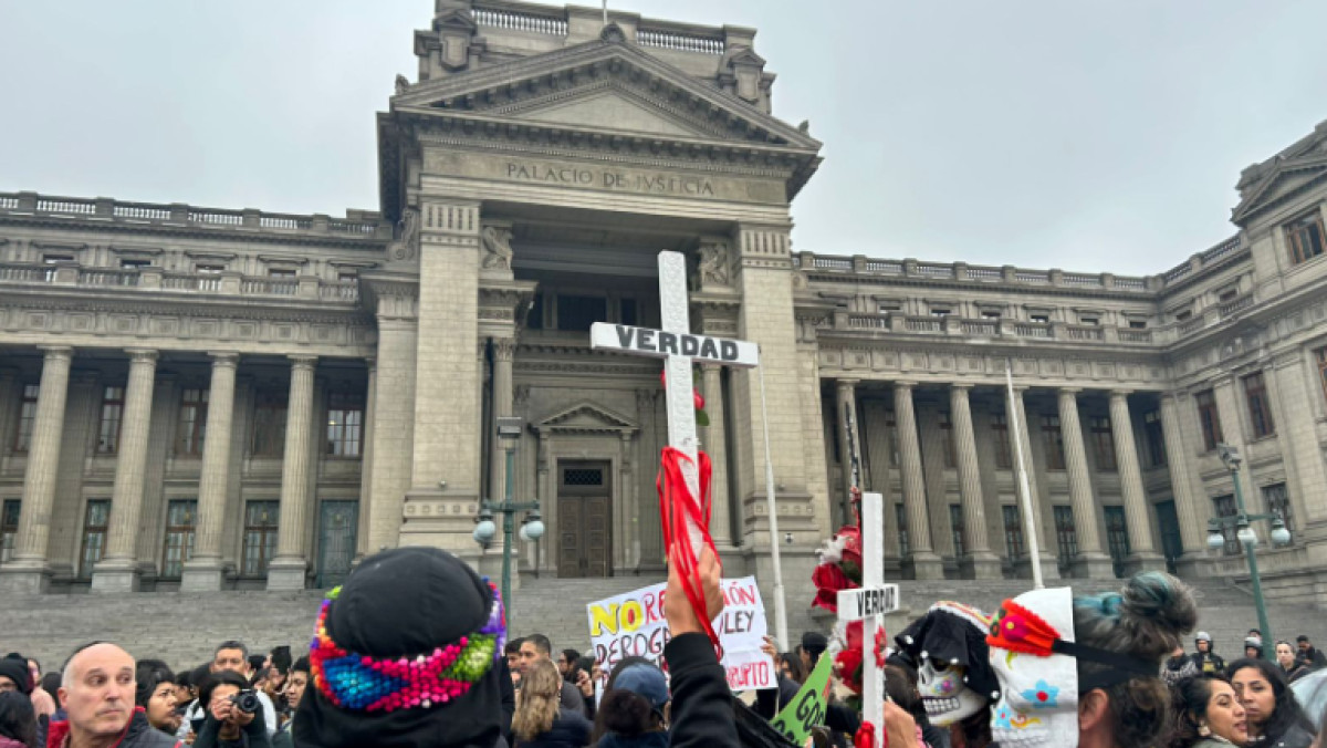 Un gran grupo de manifestantes se concentra frente al Palacio de Justicia en el Centro de Lima. Debido a ello, se ha cerrado la vía en el Paseo de los Héroes y las autoridades impiden el paso de vehículos.