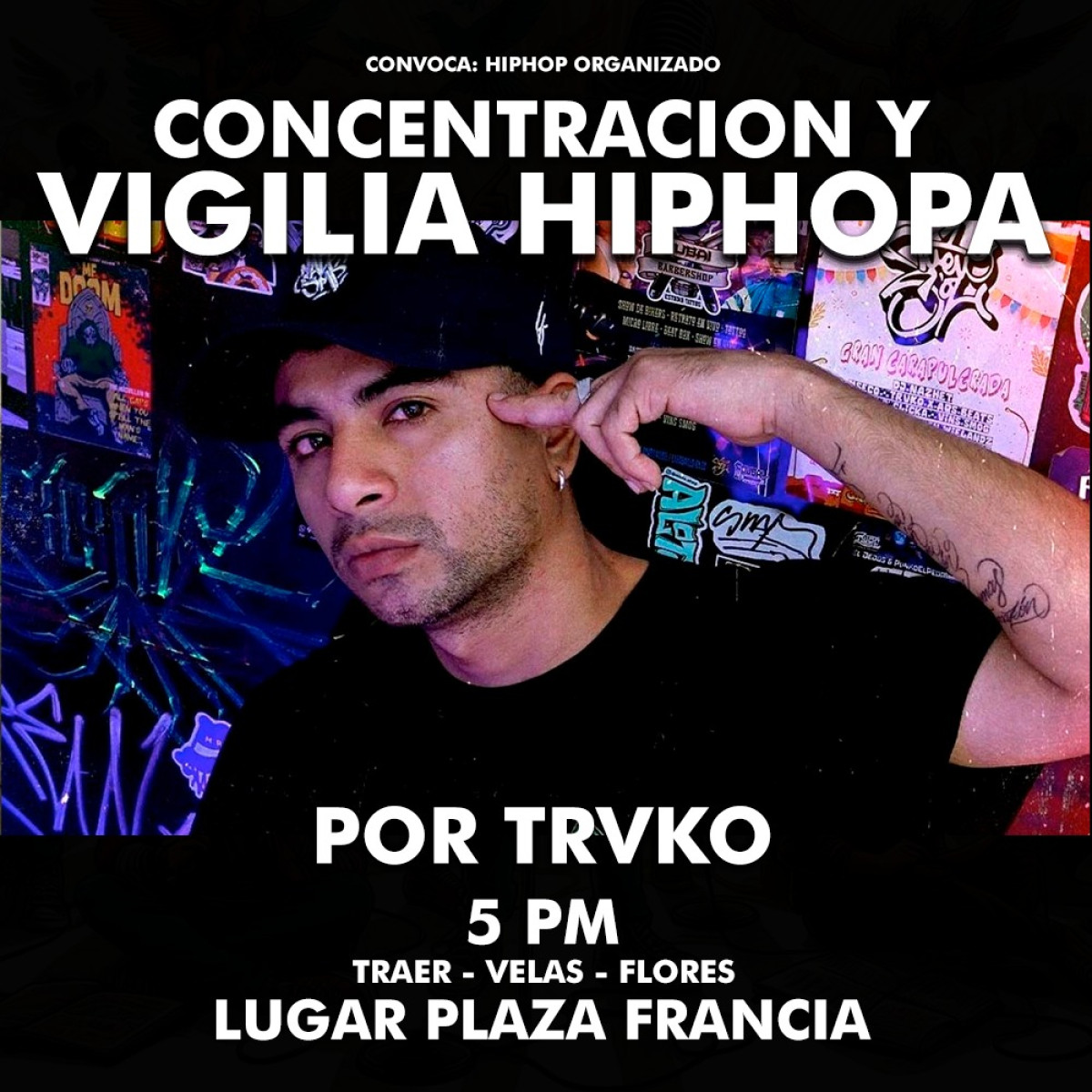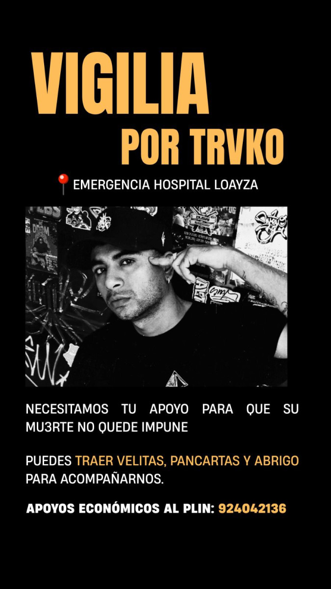 Alrededor de 100 personas continúan con la vigilia en honor a Eduardo Ruiz, conocido artísticamente como Trvko. La comunidad del género urbano, junto a otros asistentes, le rindió homenaje con afiches, cánticos y pintas en la pista con mensajes como “Trvko presente”, “Luto nacional” y “La sangre derramada jamás será olvidada”.