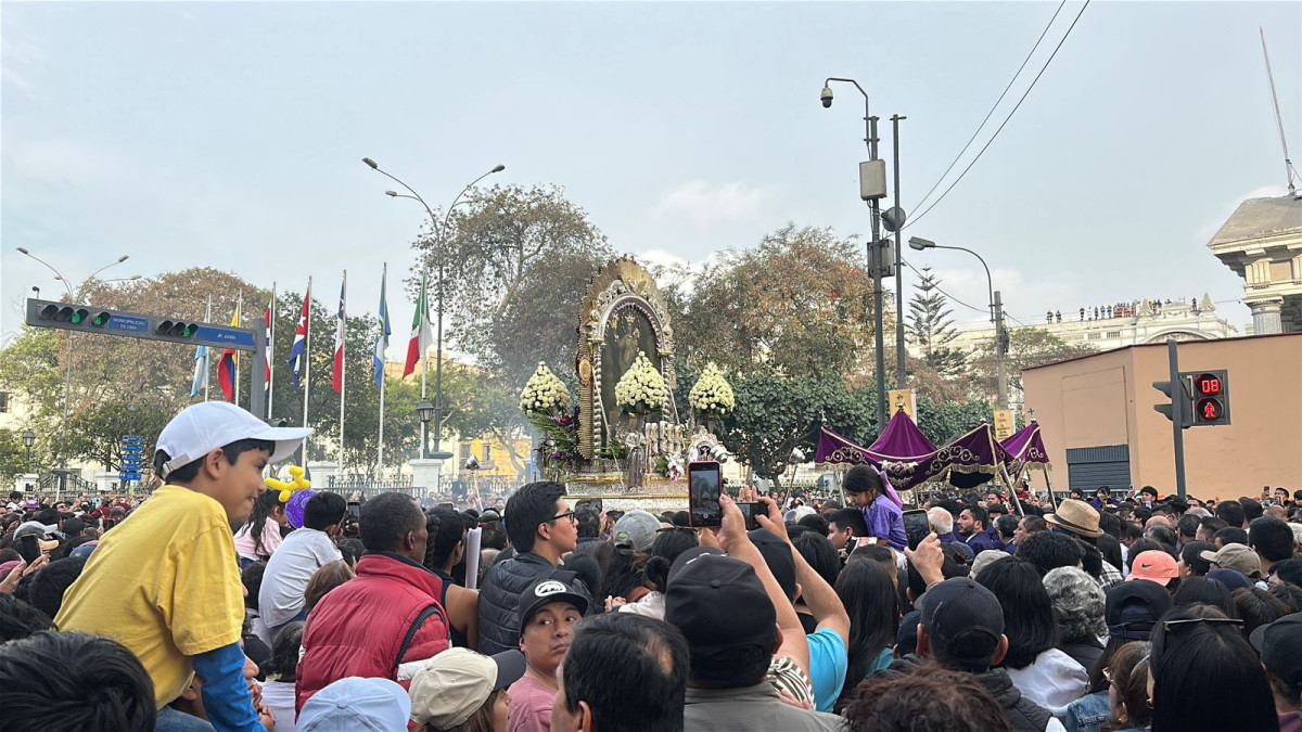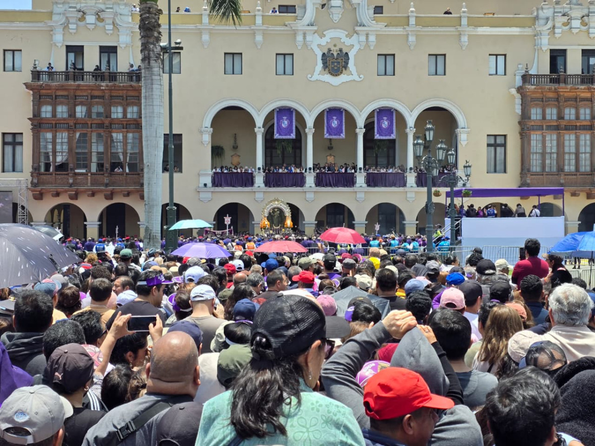 En estas horas de la mañana, el Señor de los Milagros se encuentra en la Plaza Mayor de Lima. Cientos de fieles le piden salud, seguridad y paz para el país.