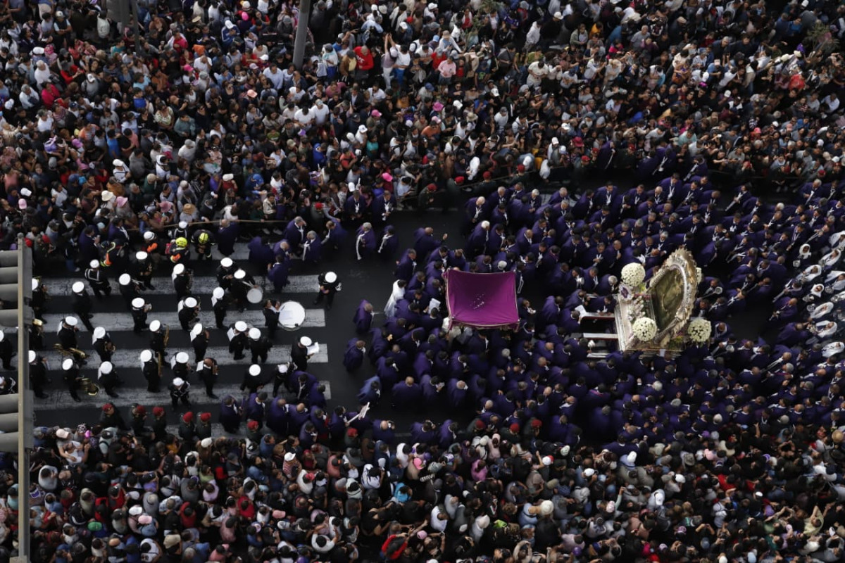 Un mar de fieles acompaña la santa imagen del Señor de los Milagros en las primeras horas de la mañana.
