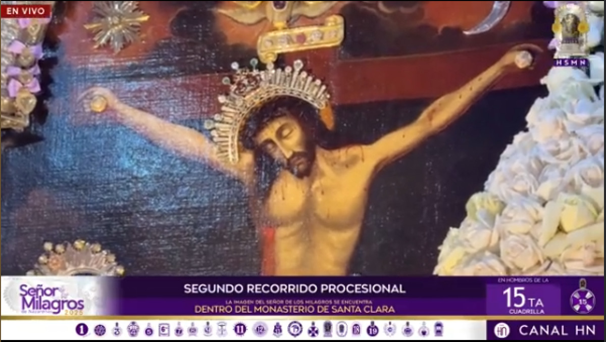 Para los fieles que no pudieron asistir de manera presencial a la procesión del Señor de los Milagros, la transmisión de la misma es transmitida por el canal Nazarenas TV, plataforma oficial de la Hermandad, que puede visualizarse AQUÍ.