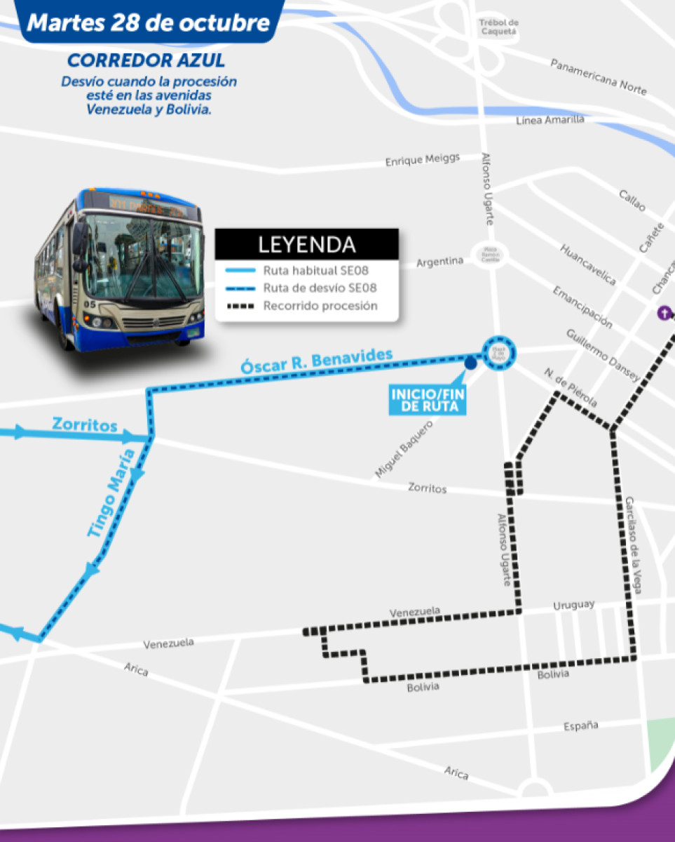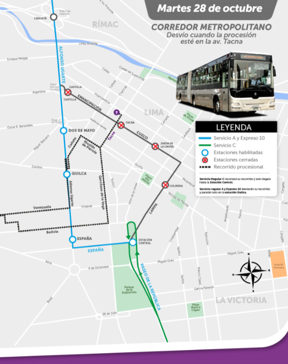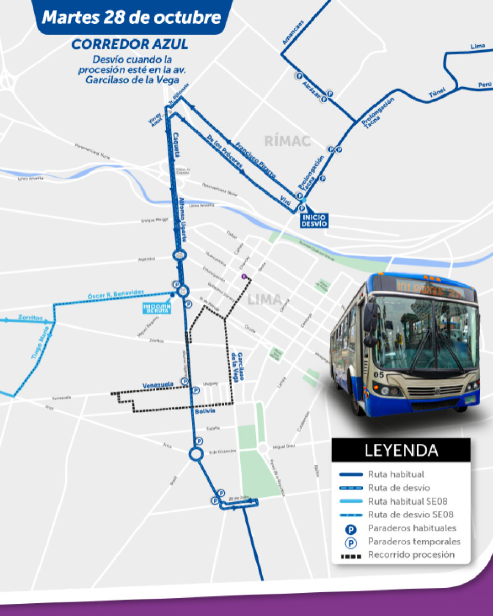 - Desvíos por la procesión del Señor de los Milagros: conoce los cambios de ruta en el Metropolitano y Corredores este martes 28 de octubre