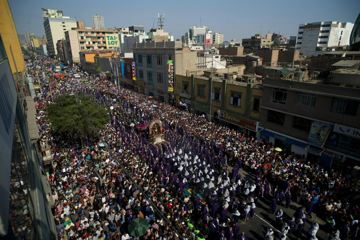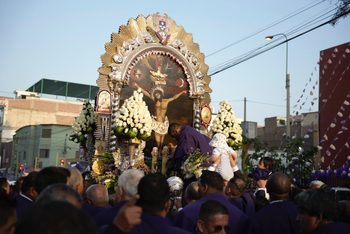 La procesión del Señor de los Milagros continúa. La sagrada imagen se encuentra en la cuadra 12 de la avenida Venezuela, mientras se realiza una misa en el santuario del Cristo Moreno.