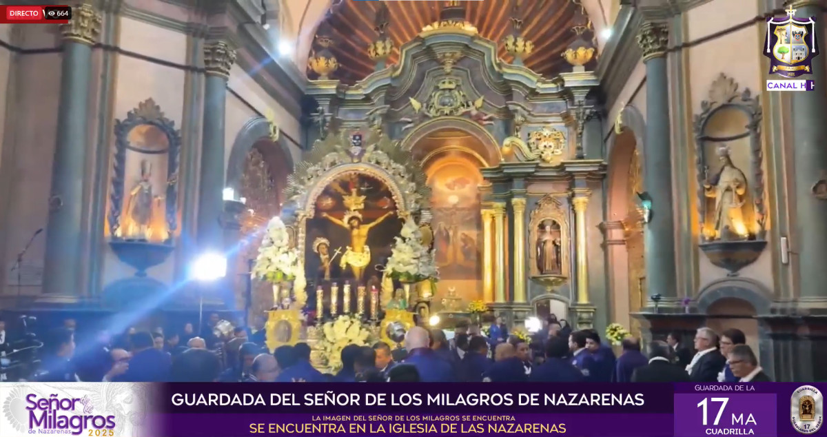 Mientras continúa el recorrido del Señor de los Milagros, se está llevando a cabo la tradicional misa en el Santuario en la iglesia de las Nazarenas.