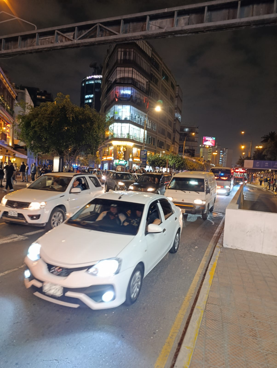 A estas horas de la noche, el tránsito vehicular en la avenida diagonal no presenta inconvenientes. Se observa la presencia de algunos hinchas del Flamengo en Pasaje San Ramón, Miraflores. Este último viene siendo custodiado por efectivos policiales, quienes están revisando las mochilas de los asistentes a este espacio público.