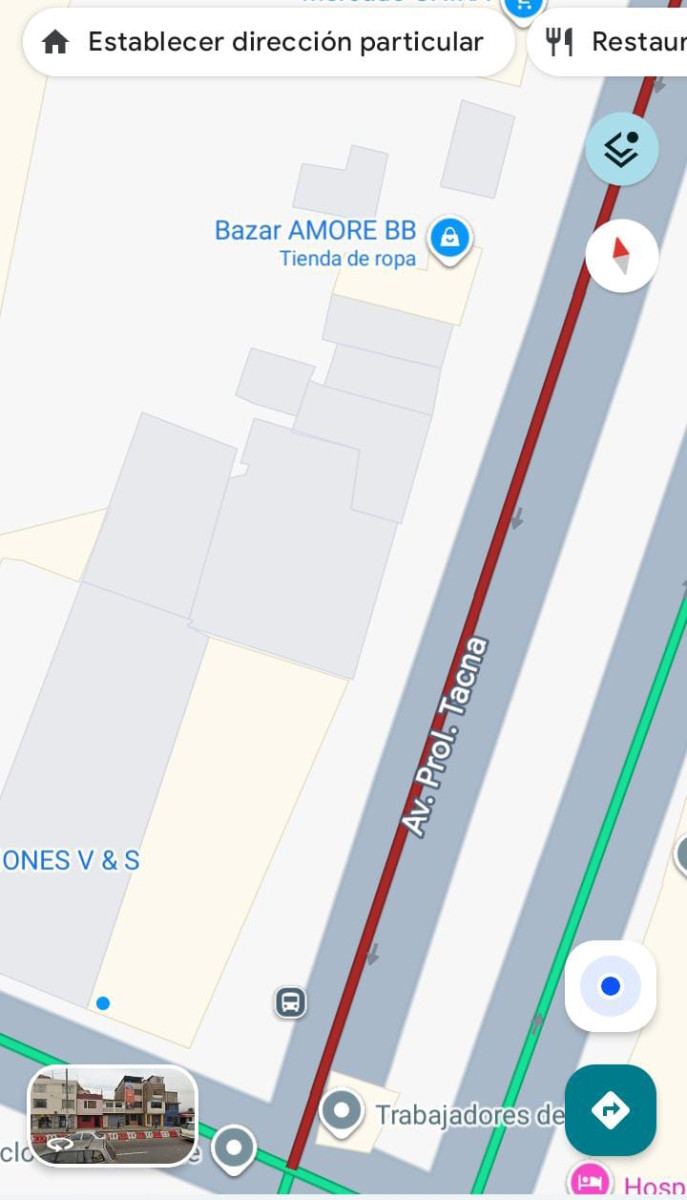 Se reporta un fuerte tráfico vehicular en la avenida Prolongación Tacna, principalmente en el tramo comprendido entre las intersecciones más concurridas, debido al incremento del flujo de vehículos en horas punta, según Google Maps.