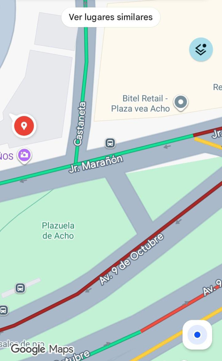 De acuerdo con Google Maps, se reporta una fuerte congestión vehicular en la avenida 9 de Octubre con dirección al Centro de Lima, con tráfico lento y tiempos de viaje superiores a lo habitual, especialmente en los tramos cercanos a cruces semaforizados y paraderos. Conductores y usuarios del transporte público vienen registrando demoras considerables.