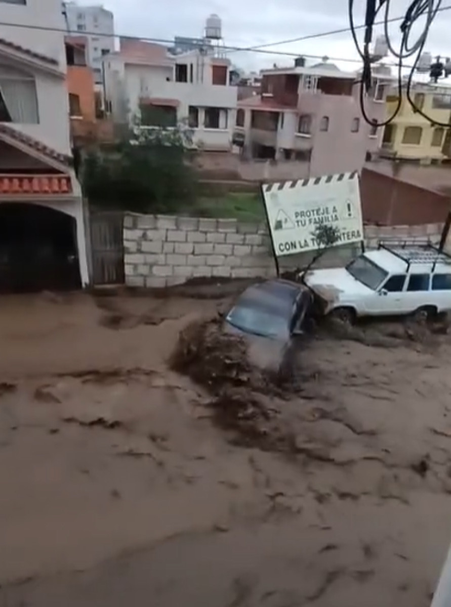 Hacia la tarde, videos desde la cooperativa Abogados muestran autos atrapados en lodo. También se reportan daños en la urbanización Los Ángeles.