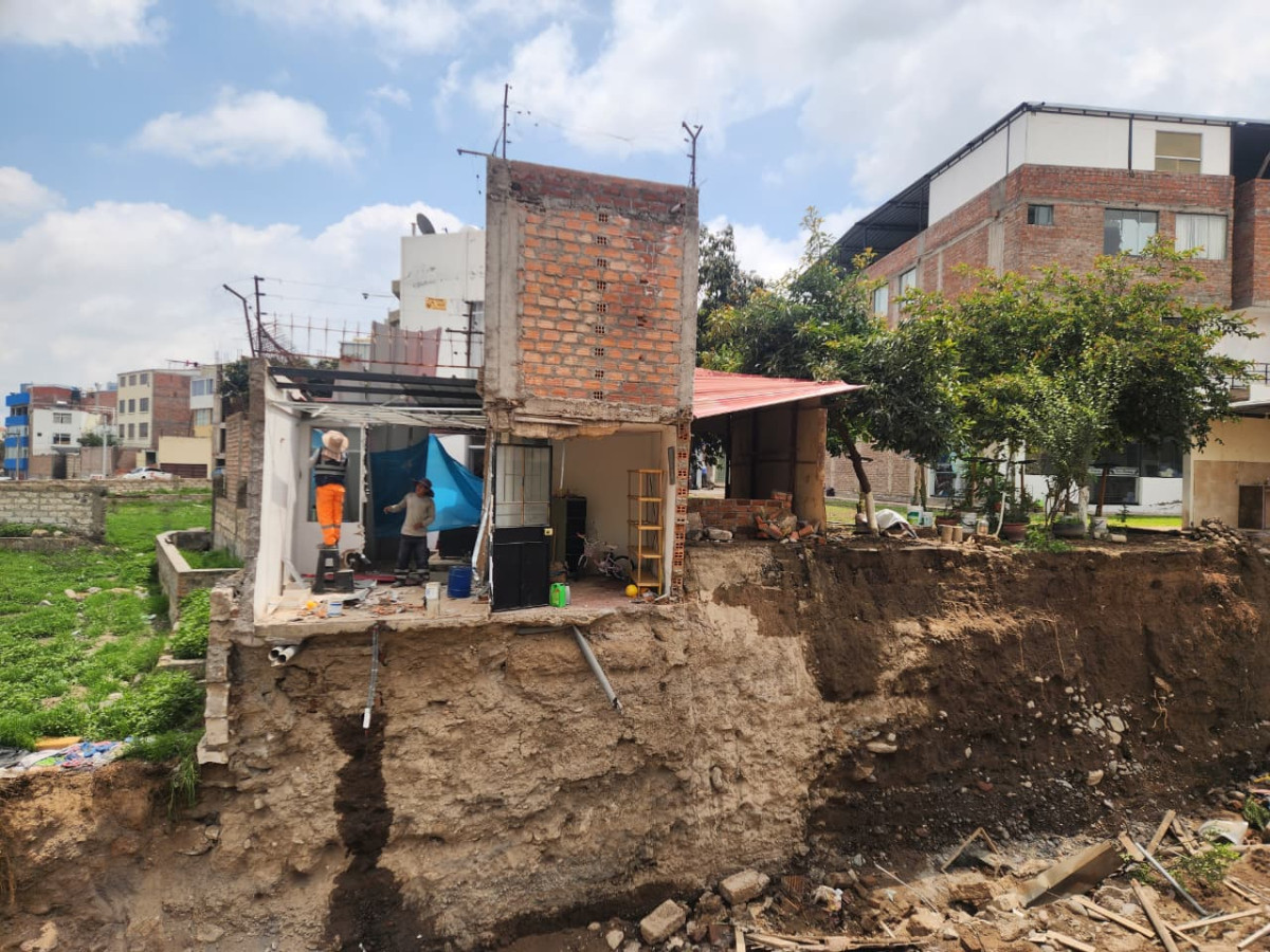 En la urbanización El Arquillo, en el distrito de Cerro Colorado, al menos dos casas quedaron destruidas tras las fuertes precipitaciones que azotan la región.
