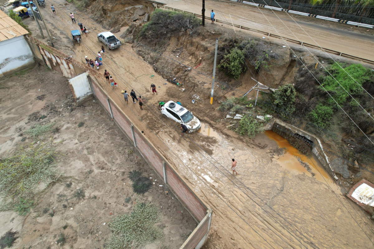 El tránsito en la Panamericana Norte hacia Tumbes registra demoras debido al mal estado de la vía, cubierta de lodo tras las lluvias. En la zona, los desagües colapsaron y el agua acumulada se mezcla con residuos, generando un fuerte olor y obligando a los moradores a caminar descalzos entre barro y aguas servidas para ingresar a sus viviendas. Los vecinos denuncian que la situación se agravó por la falta de acciones preventivas de las autoridades.