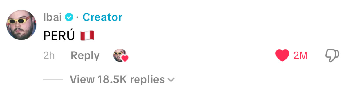 El pan con chicharrón de Perú ya tiene 2 millones de likes en TikTok. Esto sucedió a 2 horas de haberse iniciado la votación en la cuenta de Ibai. Por su lado, Venezuela se mantiene en 1.5 millones.