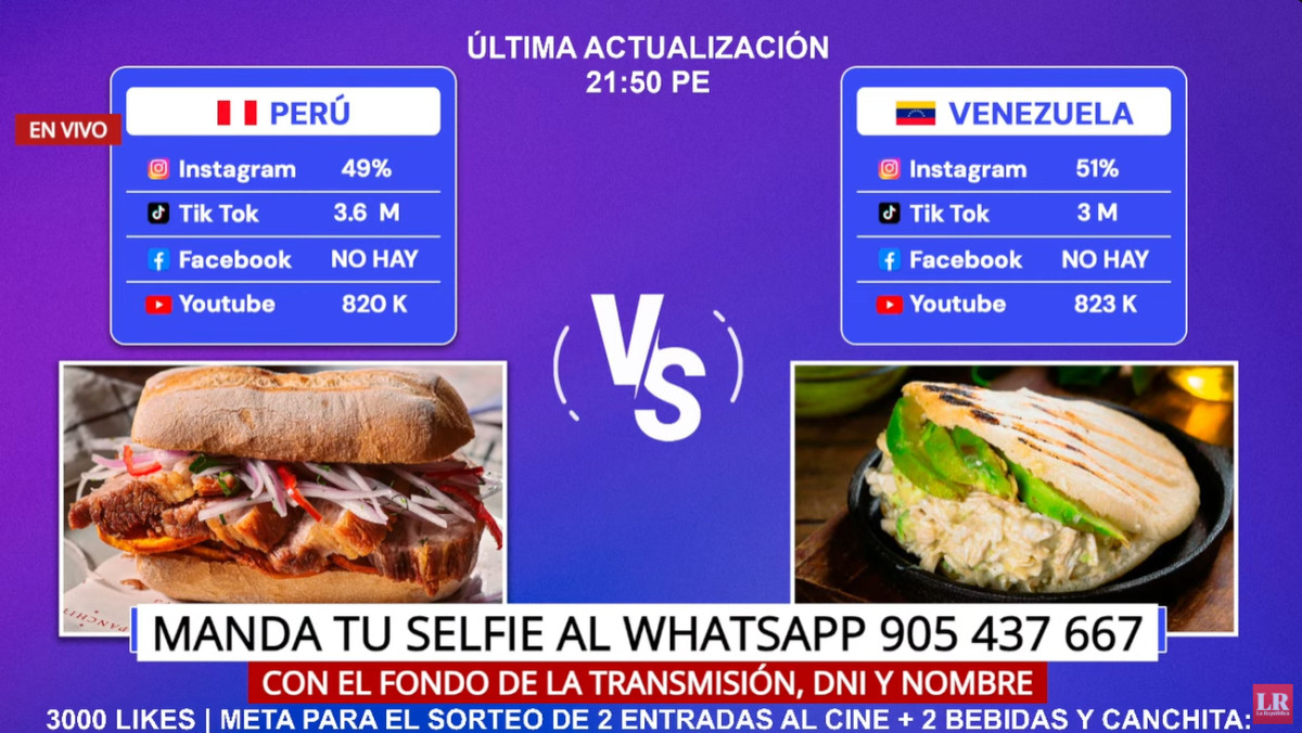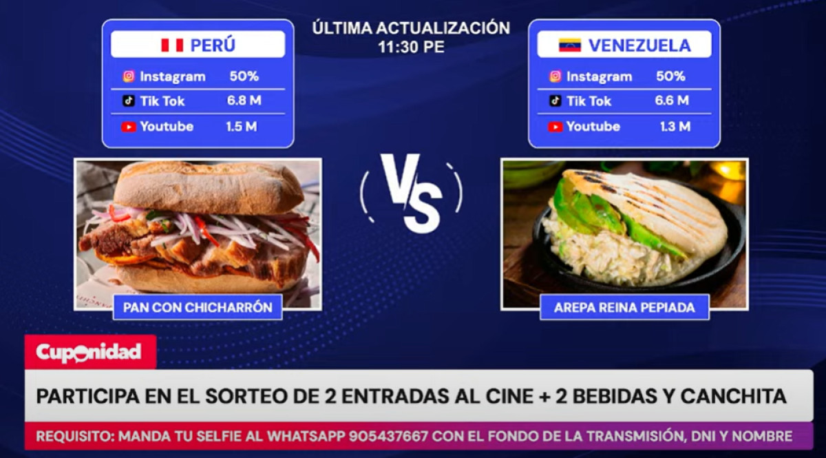Mundial de desayunos, actualización 11:00 a.m del 9 de septiembre: así van las votaciones del mundial entre Perú y Venezuela