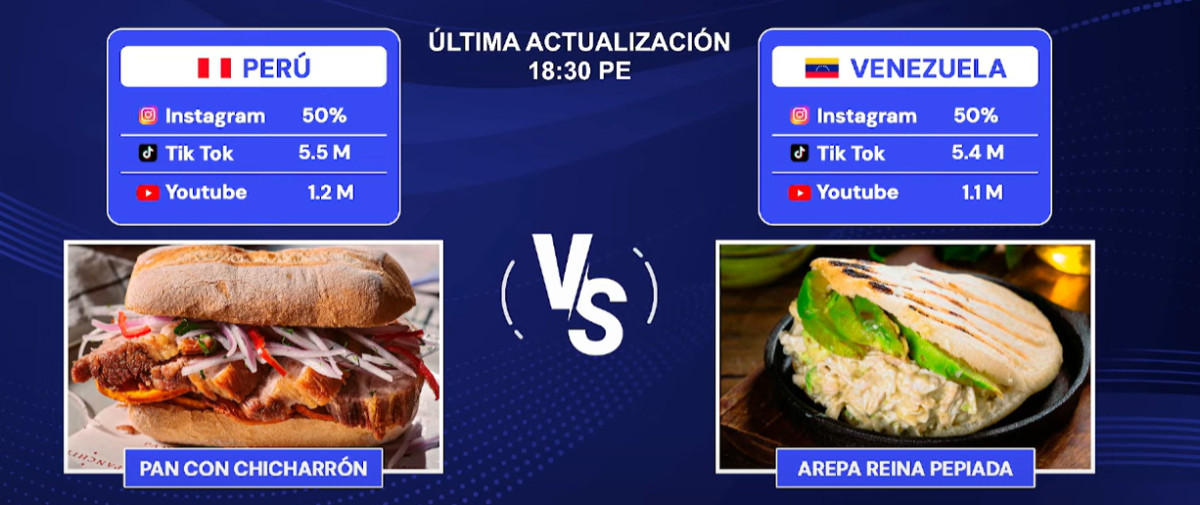 En la final quedaron Perú y Venezuela, enfrentando el pan con chicharrón peruano contra la arepa venezolana.