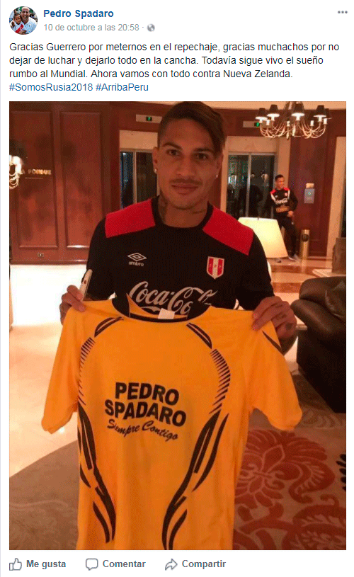 Facebook: Paolo Guerrero sorprende posando con propaganda de candidato a la alcaldía Pedro Spadaro [FOTO]