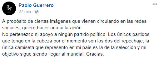 Facebook: Paolo Guerrero se pronuncia sobre imagen en la que posa con propaganda política
