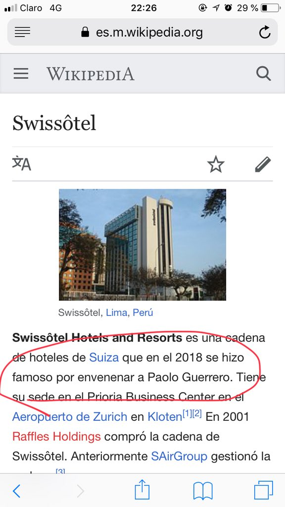 Paolo Guerrero: Wikipedia cambia información del Swissotel tras fallo TAS