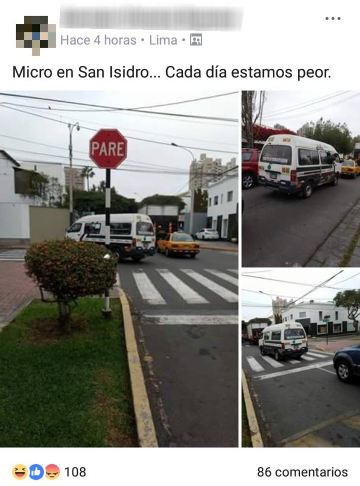 Vía Facebook: Vecinos de San Isidro se quejan de una combi y son punto de burlas FOTOS]