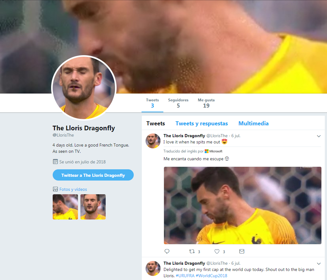 Twitter: Libélula que 'besó' al portero de Francia en el Mundial estrena cuenta