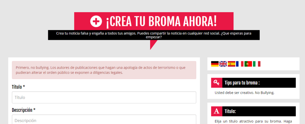 La página web está diseñada para que los usuarios inventen historias y las compartan en redes sociales. Foto: captura de 12minutos