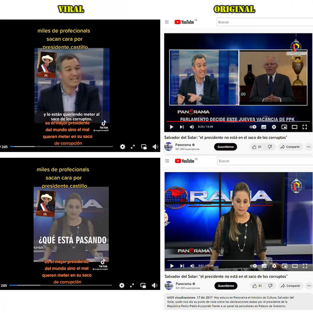 El video viral es un extracto que inicia en el minuto 8 con 19 segundos del archivo original. Sin embargo, las escenas presentadas no corresponden al orden de las declaraciones ofrecidas por el exministro. Tampoco expone las imágenes completas de la transmisión del diálogo en el espacio televisivo, ya que el medio durante la intervención de Del Solar muestra la foto de Kuczynski, un detalle cortado por los post. También se obviaron varios fragmentos que formaron parte de esa entrevista.