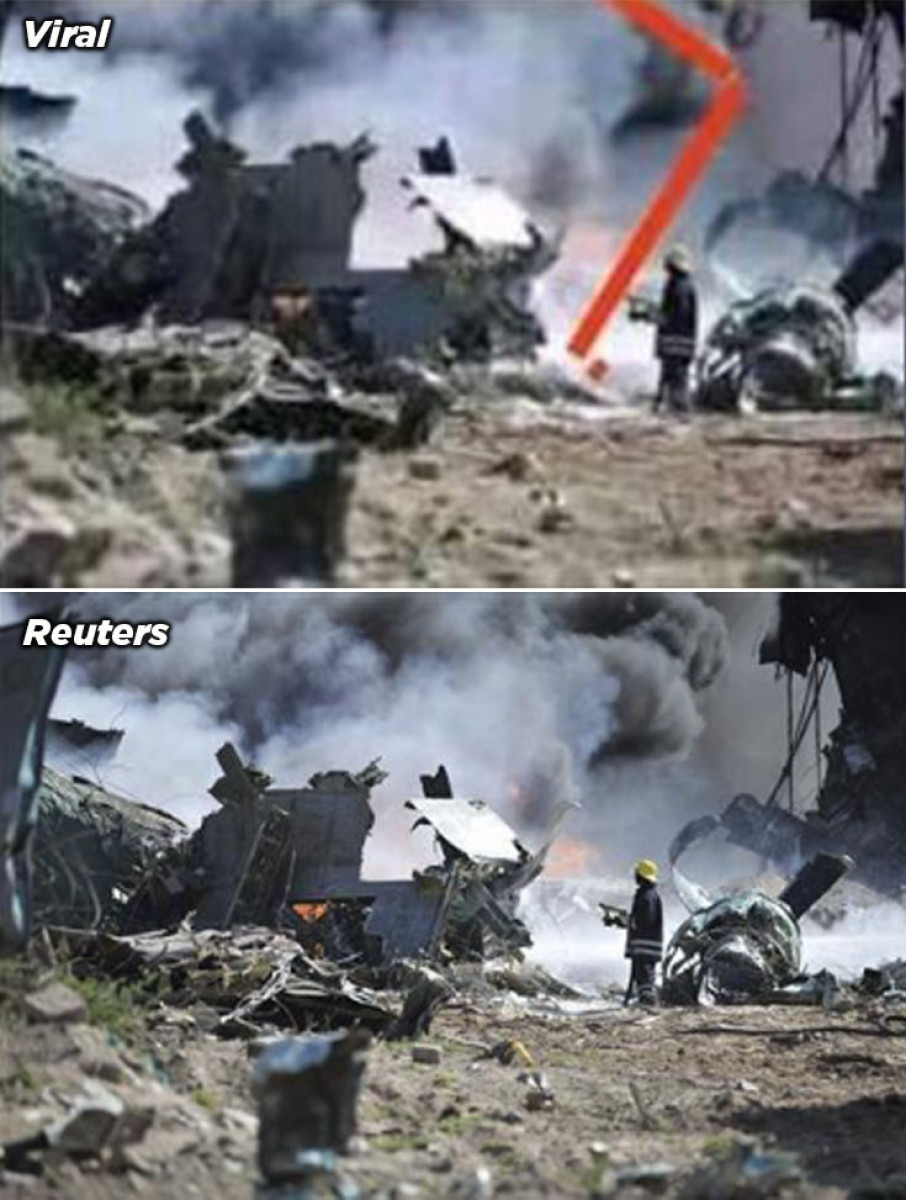 Tras otra indagación, Verificador halló que esta toma 2 muestra una escena que se encuentra en un archivo gráfico de la agencia de noticias Reuters, el cual aborda un accidente aéreo en el aeropuerto de Mogadishu, en el país africano Somalia, el 9 de agosto de 2013. Reportó que la imagen presenta cómo “un bombero de la AMISOM (Misión de la Unión Africana en Somalia) intenta extinguir un incendio en el lugar donde se estrelló un avión en Mogadishu”.