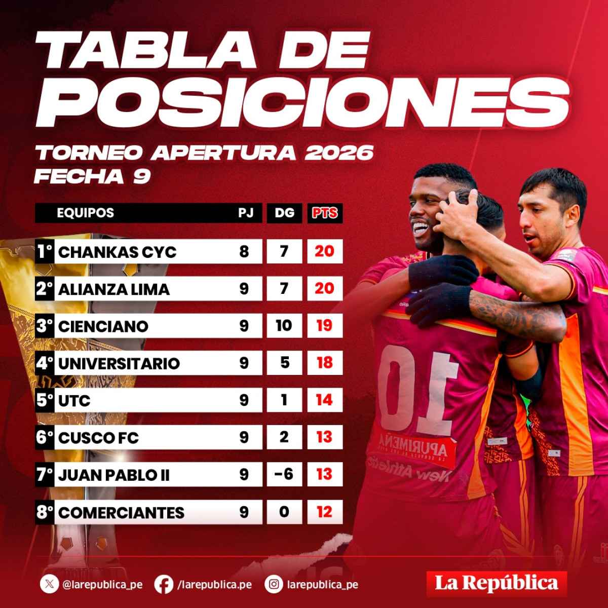 Tabla de posiciones del Torneo Apertura. Foto: composición LR/Jazmin Ceras